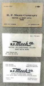 RF Meeh Company was founded in 1910 and originally located in south St. Louis. Robert F. Meeh started the company as a sheet metal company fabricating and installing copper gutter, cornices, and flashing.
